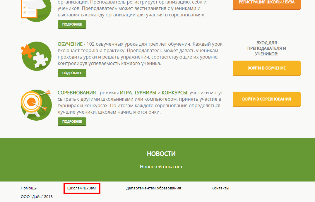 В дальнейшем он потребуется для того, чтобы воспользоваться разделами ОБУЧЕНИЕ и СОРЕВНОВАНИЯ.