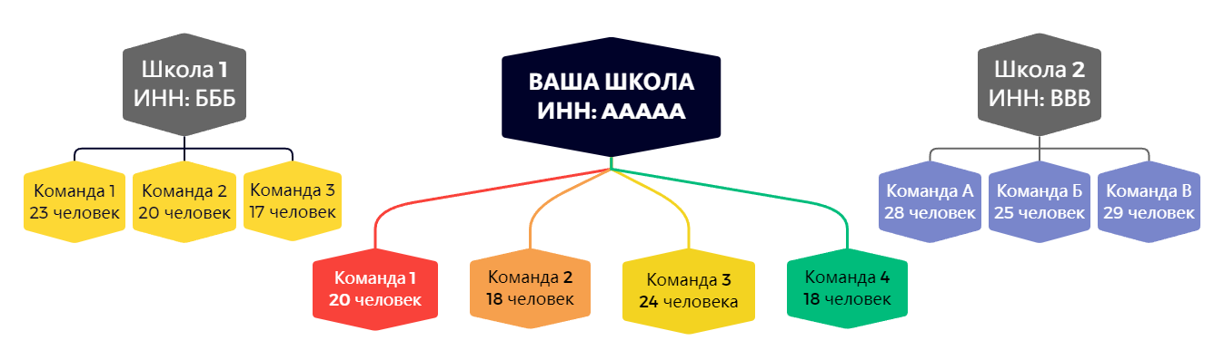 У каждой образовательной организации есть свой уникальный ИНН, который преподаватель вводит при регистрации своей команды.